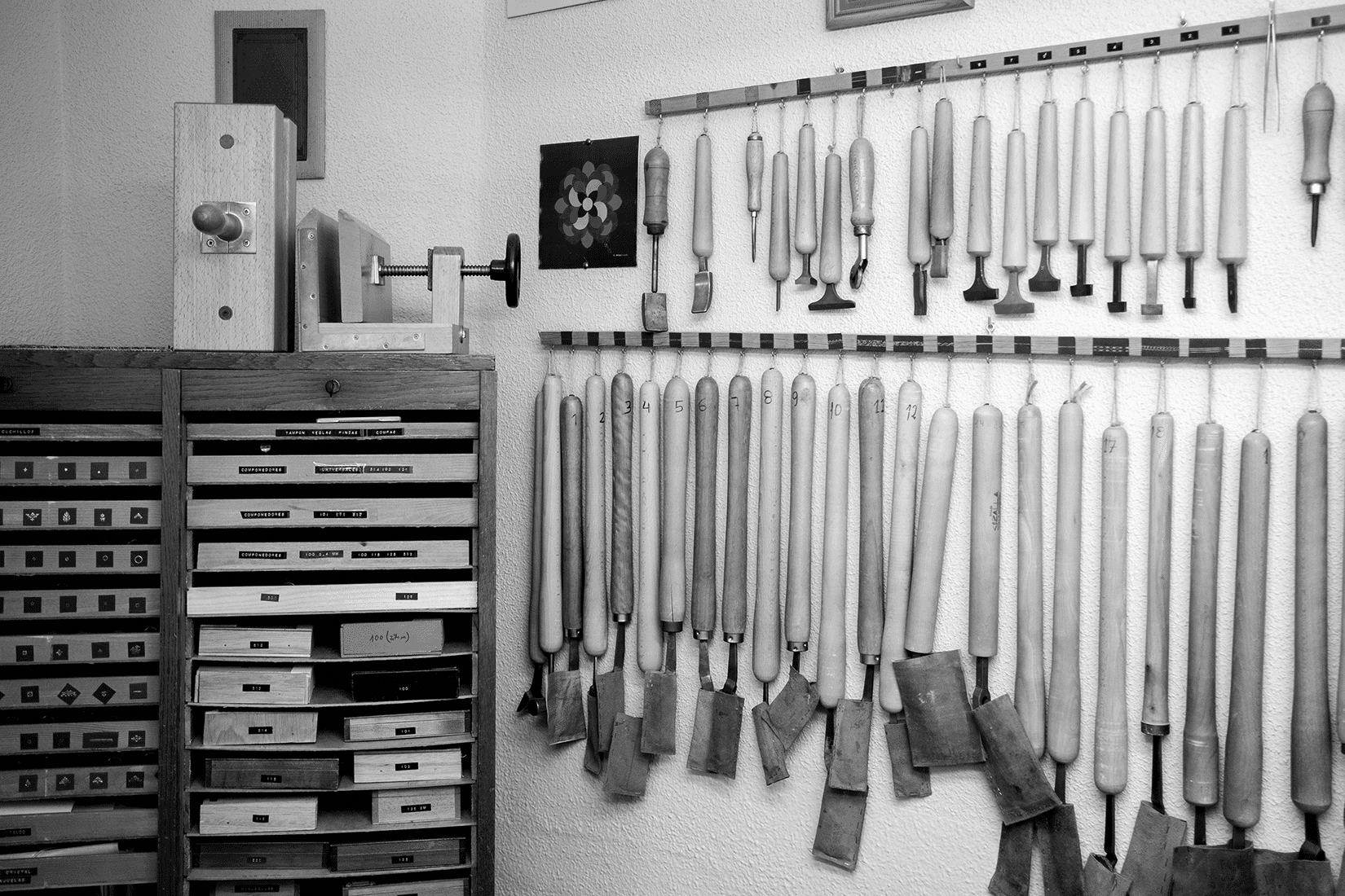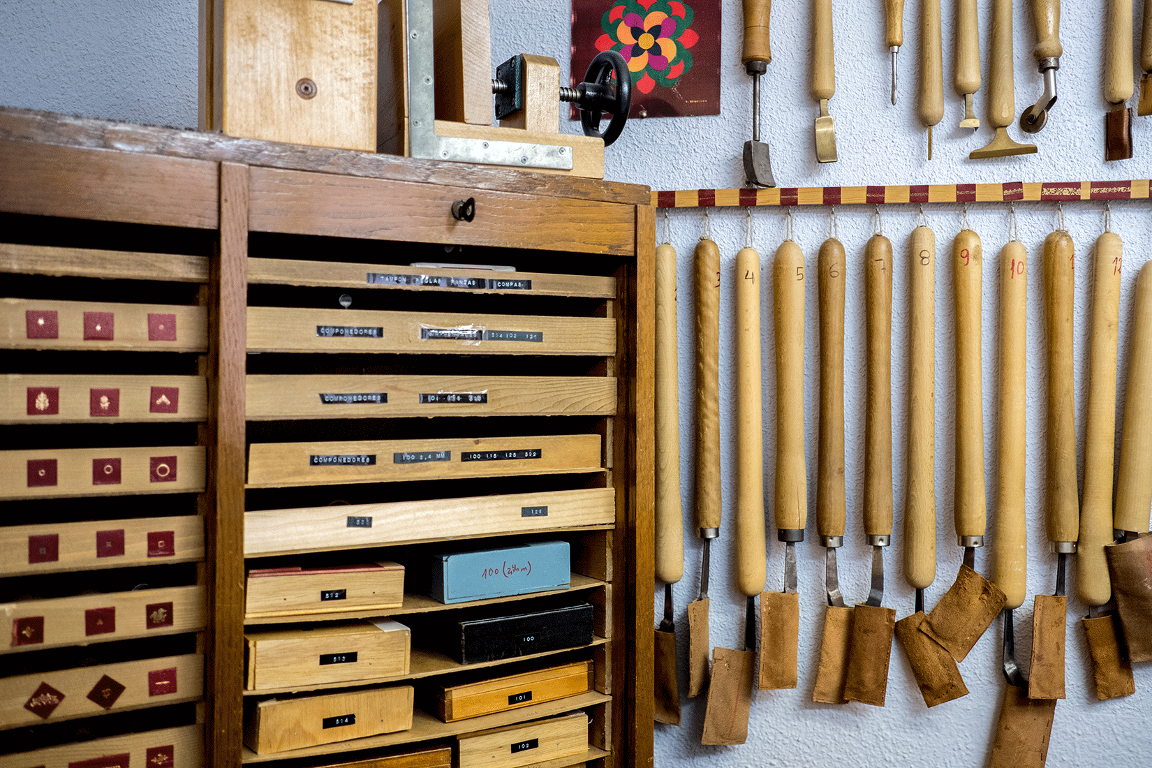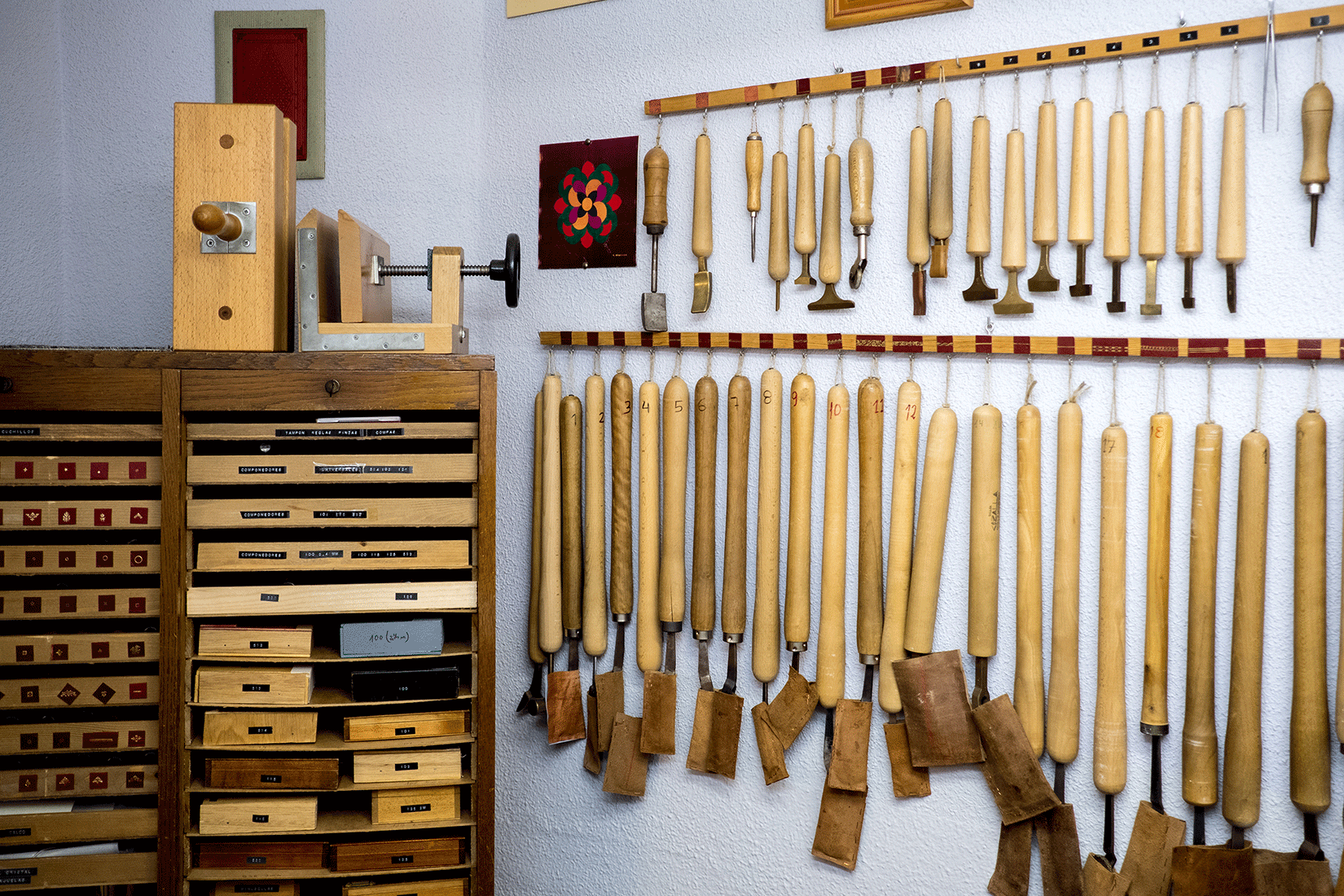 En un ambiente tranquilo y agradable, cada alumno dispone de su propio espacio de trabajo desde donde podrá crear los proyectos que desee, bien sean encuadernaciones para su biblioteca personal, para regalos o creaciones para presentar a concursos de encuadernación.