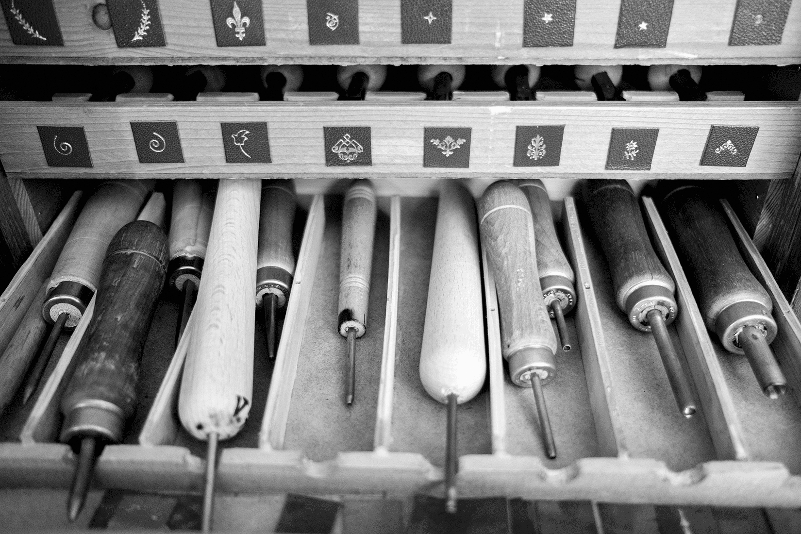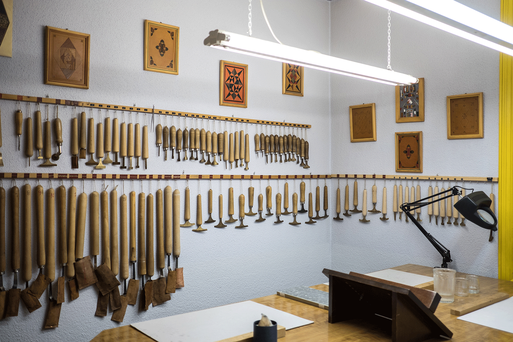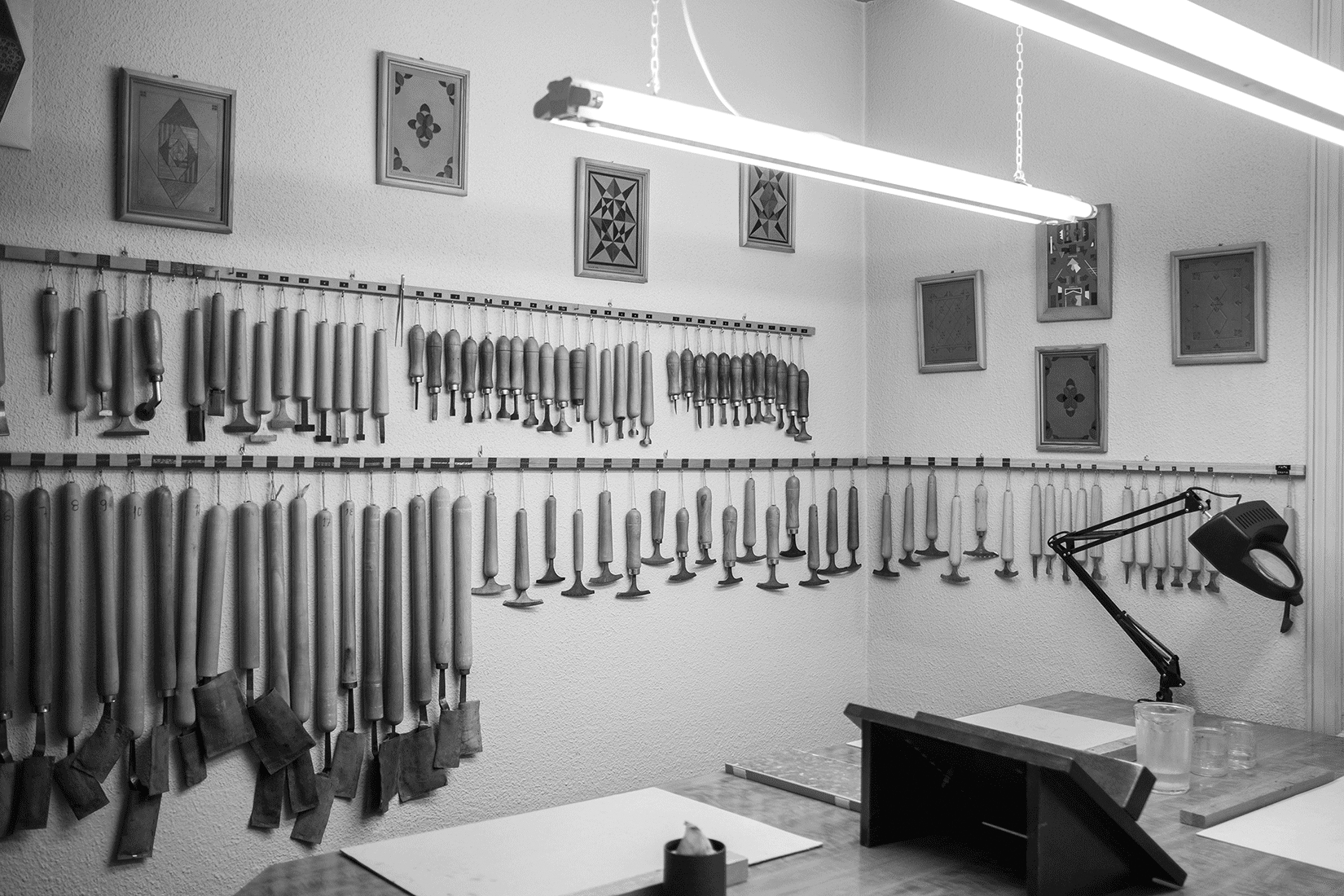 En un ambiente tranquilo y agradable, cada alumno dispone de su propio espacio de trabajo desde donde podrá crear los proyectos que desee, bien sean encuadernaciones para su biblioteca personal, para regalos o creaciones para presentar a concursos de encuadernación.