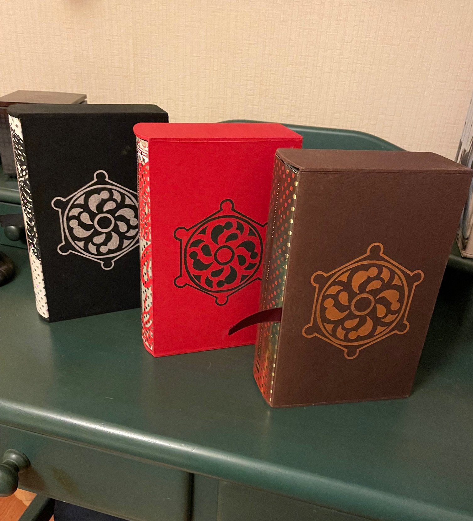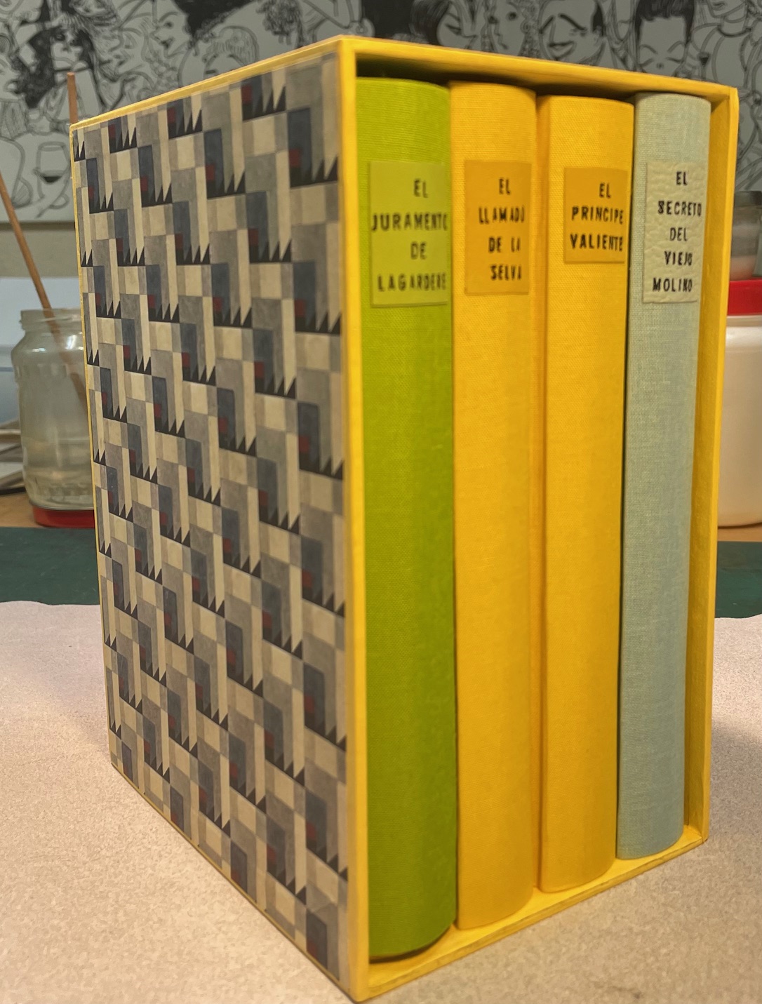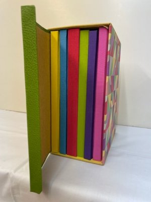 Aquí podéis ver una muestra de las más de 2.000 encuadernaciones de libros, estuches, carpetas y cajas que se han realizado en el taller de encuadernación. Como veréis, muchas son sobre piel, otras llevan dorados, dibujos e incrustaciones. Unas son muy clásicas y otras son modernas, de diseño y vanguardistas.